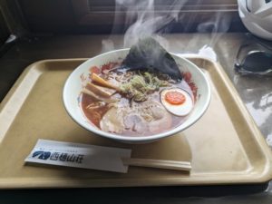 西穂山荘まで時間はかかりましたが、無事到着したので有名な西穂ラーメンを食べて外に出ると、後ろから一斉に登山者が現れました。