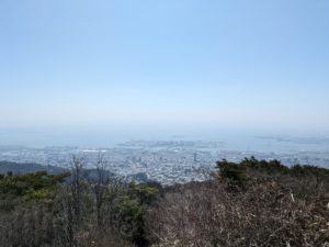 渦が森バス停から六甲ガーデンテラスに向けて上がり、六甲山頂まで縦走、岡本まで下山のコースで歩いた。