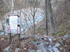 登山道に入ってすぐに川があります。