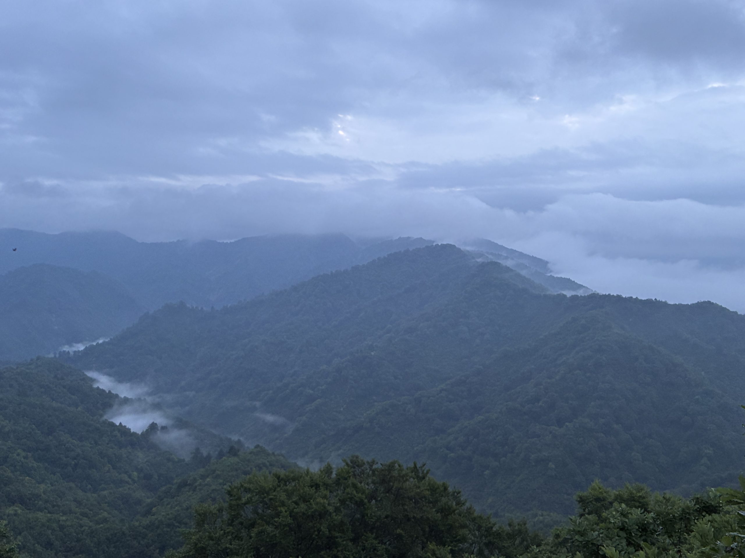 あいにくの天気でしたが、朝もやの中を気持ちよく歩けました。