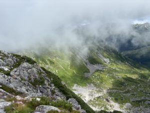 水晶岳で登りは終わりと思い込んでいたのですが、祖父岳が残っているのを忘れていました。