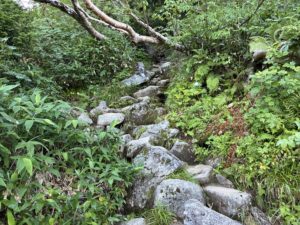 お盆休みど真ん中でも20人くらい抜いただけなので、通常ならすれ違いも少なく静かな山行を楽しめるでしょう。