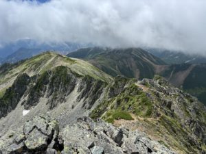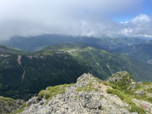この日の朝、小屋から水晶岳までのルートがとにかく最高の縦走路でした。