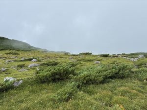 黒部五郎岳も肩までは晴れていたのですが、自分が登頂する直前にガスが出現して微妙な天気となりました。
