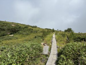 少しガスがかかったりもしましたが風が少しあったので涼しく、本当に素晴らしい景色を見ながらそれほど高低差がなく歩けます。