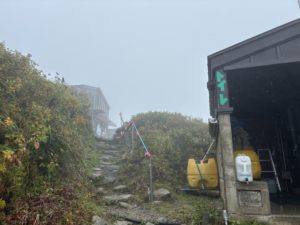 順調に登っていき山頂近くの避難小屋までいいペースで到着、登頂まで5時間を切りそうな見込みで下山は14時を軽く切る予想になりました。