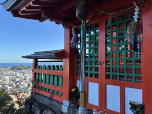 3時間もせずに小口まで到着し、チェックインしてから宿の上にあるお寺を参拝しました。